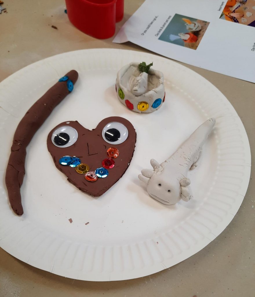 Press the clay flat, cut a heart shape and add some clay around the edges or curve it into a shallow bowl shape. Decorate with patterns, sequins or beads.